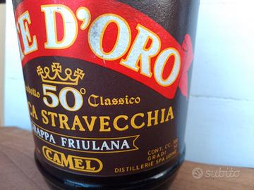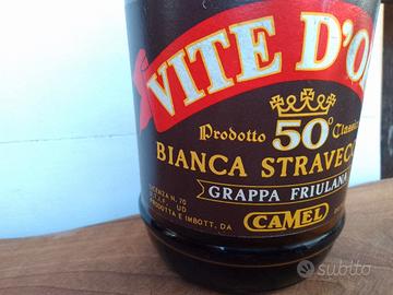 Bottiglia integra da collezione Grappa friulana Vite d'oro bianca stravecchia Camel produttore 50% vol - 0,7 l - anni '90 Da collezione privata