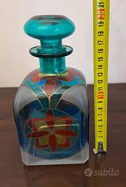 Bottiglia in vetro decorata a mano, ottimamente conservata.