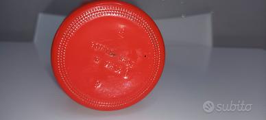 bottiglia liquore Beccaro in vetro laccato rosso con decorazioni geometriche. anni 70. completa di tappo.