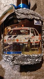 Bottiglia 25 cl originale anni 90 dedicata al pilota di rally Miki Biasion, realizzata dalla Paolo Belli di Salsomaggiore per il Miki Biasion fan club. Finitura tipo "roccia", Ancora sigillata.