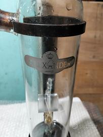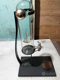 vendo bottiglia porta grappa vintage con base in legno e metallo, vista la fragilità spedizione non disponibile. Visibile e ritirabile a San Giorgio delle Pertiche PD.