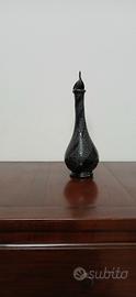 Bottiglia vetro Murano Archimede Seguso anni 70 vetro nero con la tecnica di inclusione di foglia d'argento, meraviglioso il tappo a forma di foglia o fiamma.