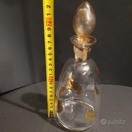 Bottiglia tappo a goccia e foglie d'oro anni 30