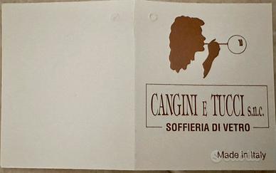Bellissima bottiglia con tappo in vetro soffiato colorata della ditta Cangini e Tucci. La bottiglia e' nuova si trova in ottimo stato sarà fornita con certificato di garanzia. Ha altezza 40 cm e diametro massimo 15 cm. Sarà accuratamente imballata e spedita. Si assicura ottimo imballo ed arrivo integro.