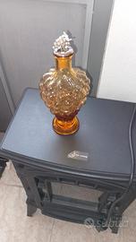 Bellissima bottiglia in vetro di colore ambrato, a forma di grappolo d'uva. - Realizzata in vetro spesso e resistente. - Presenta dettagli raffinati e un tappo decorativo. - Perfetta come elemento decorativo o per contenere bevande.