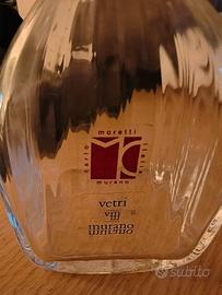 Pezzo unico e imperdibile per collezionisti e amanti del design italiano! Vendo autentica bottiglia/decanter in pregiato vetro di Murano, firmata dal maestro Carlo Moretti e risalente agli anni Ottanta.