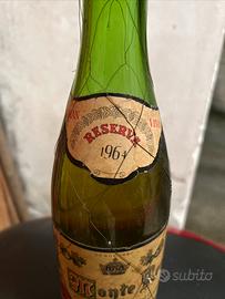 Vendo bottiglia d’epoca Monte Real Reserva 1964 della storica Bodegas Riojanas, provenienza Cenicero – Rioja – España. Bottiglia originale vintage, molto bella per: •collezionismo enologico •arredamento cantina, taverna o locale •scenografia ed esposizione Dettagli visibili in etichetta: •Monte Real •Reserva 1964 •Bodegas Riojanas •Cenicero (Rioja – España) Condizioni: bottiglia con evidenti segni del tempo, etichetta vissuta e usurata come da foto, capsula presente. Livello del contenuto visibile in foto. Importante: oggetto venduto come bottiglia da collezione / esposizione, senza alcuna garanzia sulla conservazione o bevibilità del contenuto, dato il lungo invecchiamento.