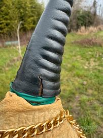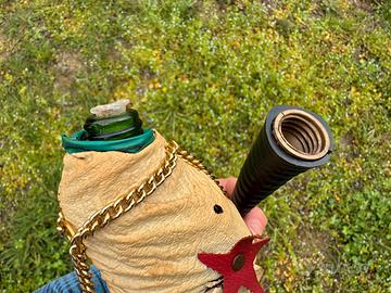 Vendo bottiglia vintage a forma di elefante, con rivestimento in similpelle e catenelle dorate.