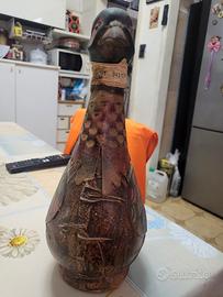 bottiglia vintage anni 60/70 fagiano in cuoio