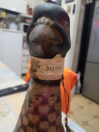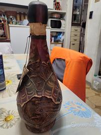 rara bottiglia vintage vetro pelle fagiano in cuoio Montelupo (FI) anni 60/70 condizioni full set conservando tutti i suoi elementi originali contiene parte del vino contenuto originale