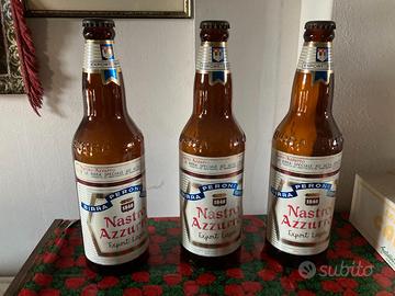 Bottiglia originale di Birra Peroni Nastro Azzurro Export Lager, complete di tappo e con etichette originali.