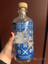 Bottiglia vuota di gin, con etichetta World Gin Awards Best Italian London Dry.