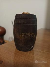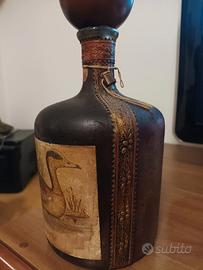 Vendo in coppia bottiglia vuota di Anas Americana con tappo originale in legno.Bottiglia rivestita in pelle senza alcun danno con cuciture ancora perfette e disegno senza alcun segno.Botticella ancora piena di Fine Grappa LIBARNA.la botticella è in ottimo stato senza crepe o altri segni.