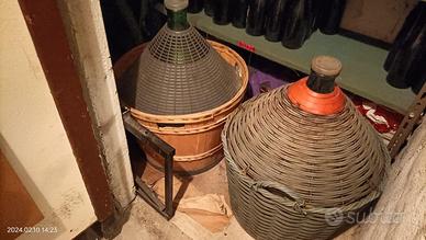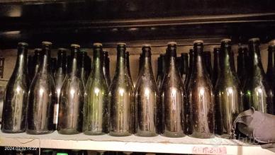 170 bottiglie vino vetro verde scuro, vuote, lavate, con tappo plastica più damigiane e tappatore