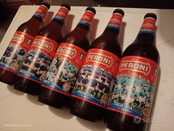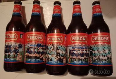 5 bottiglie da 66cl di birra Peroni dei Mondiali di calcio anni: 1934, 1938, 1970, 1982 e 1994. Piene con capsula leggermente ossidata.