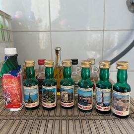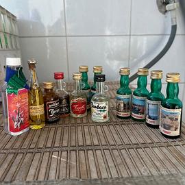 Bottiglie storiche in vetro, conservate in vecchi mobili. Da collezione, esposizione.