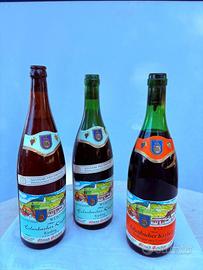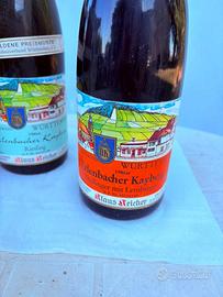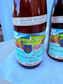 Vendo 3 bottiglie di vino tedesco d’annata Klaus Reicher, tutte del 1966, provenienti dalla regione vinicola di Württemberg. Due sono Riesling "Erlenbacher Kayberg" (Qualitätswein mit Prädikat) e una è un Trollinger mit Lemberger della stessa zona. Le etichette sono ben conservate, tutte con medaglia d’oro “Goldene Preismünze” del Weinbauverband Württemberg.