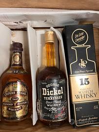 Vendo cinque bottiglie di whisky, come da foto. Conservate sempre in luogo fresco e asciutto e all’interno di una cassa di legno.