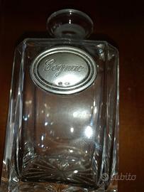 N. 2 bottiglie in cristallo COGNAC / WHISKEJ con placca in argento h. cm. 22 misure cm. 8 x cm. 8 vintage.