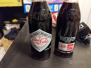 Vendo 2 bottiglie del 1979 anniversario dei 50 anni Coca-Cola in Italia, lettore cd con libretti e adattatore tutto originale Philips marchiato Coca-Cola, bottiglia di vetro lavorata, orsetto e sacchetto gonfiabili per tifare nuovi incelophanati!!