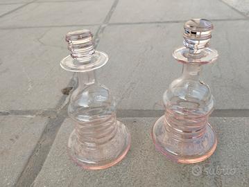 Vendo 2 graziose bottigliette fatte a mano in vetro rosa, perfette, altezza 12,5 e 12cm. Prezzo 10€ ritiro a Gruaro o spedizione