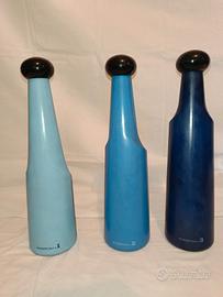 Set di 3 bottiglie di vetro disegnate da Salvador Dalì su incarico dei produttori del vino Rosso Antico all'inizio degli anni Settanta, nell'ambito di una campagna promozionale. Le targhette di stampa di queste bottiglie sono state distrutte nei primissimi anni '70 per garantire lo status di edizione limitata. Le tre bottiglie sono di tre diverse tonalità di blu. Ogni bottiglia è numerata sul retro come numero 1, 2 o 3. Tutte tre hanno il tappi originale in plastica nera. Sono in ottime condizioni. Solo consegna a mano. #dalì #salvador #rossoantico #bottiglie #edizionelimitata #collezionismo #modernariato #anni70