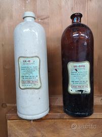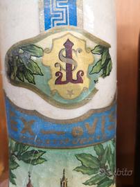 2 bottigli vuote di ricostituente dell'azienda Tombolini con etichette raffigurante il Santuario di Loreto,