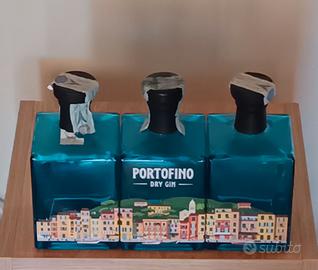 Bottiglie vuote iconiche originali di PORTOFINO DRY GIN, come da foto, perfette per collezione o lavori creativi.