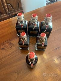 Aceto balsamico tradizionale di Modena, ottenuto da mosto cotto a fuoco diretto a vaso aperto di uve tipiche modenesi, lungamente invecchiato e affinato in botti di diverso legno pregiato . Invecchiato 30 anni.