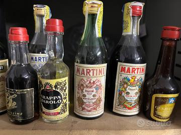 Vendo set di 9 liquori anni 80, mai aperti da collezione. Inclusi diversi tipi di Martini, Prosecchina, grappa al Barolo..