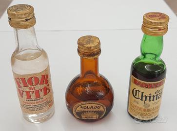 Vendo n. 9 bottigliette mignon liquori vari vintage da collezione in buone condizioni generali. Altezze variabili da cm 8/10/12/14. Tipi liquori: Millefiori Casoni; Grappa Julia; Brandy Ramazzotti; Fior di Vite Ramazzotti; Solaro gran mandarino di Sicilia; China elixir Barbieri; Brandy Stock 84; Amaro Cora; Liquore Strega. La vendita è intesa come visto e piaciuto senza garanzia alcuna in quanto gli oggetti sono da considerare come usati.