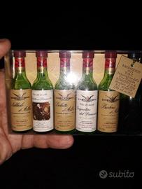 6 Bottigliette di vino Mignon - in scatolina da collezione - della ALPA (miniature per collezionisti fra le piu' piccole al mondo).