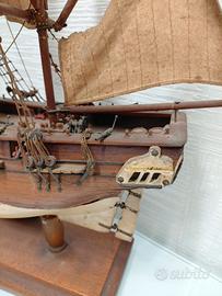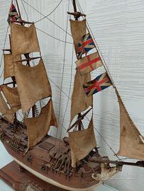 Modellino nave scuola Vespucci di manifattura totalmente artigianale con ornamenti in ottone completa di tutte le vele, con base di legno.