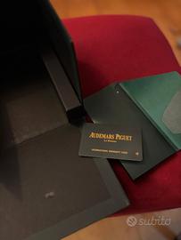 Vendo scatola e controscatola full set orologio audemars piguet con tutti i libretti e certificati, ovviamente prodotto replica 1:1, condizioni pari al nuovo.