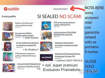 i miei valori? ho SOLO SEALED! cioè solo cose originali e sigillate, NO scam, NO manomissioni, il contenuto (bustine, carte promo, accessori) son SEMPRE perfetti, vale per TUTTI gli annunci che trovi sul mio profilo