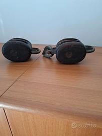 Coppia di bozzelli vecchi in legno e ottone