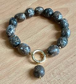 favolosa bracciale con delle pietre naturali di Agata Turritella e in argento massicciò 925 Vermeil.