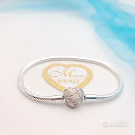 Bellissimo bracciale compatibile con tutti i tipi di charm compresi quelli Pandora. La chiusura del bracciale è caratterizzata da un cuore argentato. Il bracciale non è di nessuna marca ed è perfettamente compatibile con charm ed accessori di tutte le marche per questi modelli. Misura 19 Il bracciale è nuovo completo di scatola. Contattaci per info ed acquisti multipli Dai un'occhiata al mio profilo trovi tantissimi articoli simili a prezzi bassi
