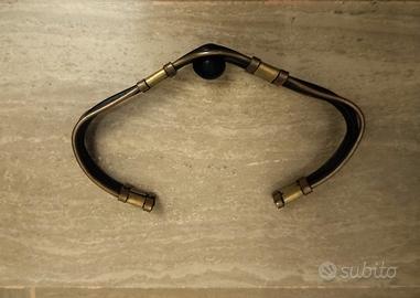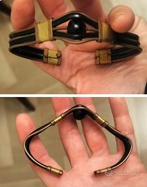 Bracciale per collezionisti di articoli egizi.Originale : comprato in Egitto durante una crociera sul Nilo.Unisex ,a forma di occhio di Horus : simbolo benaugurante di protezione, prosperità,buona salute e del potere regale.Il bracciale è rigido ma regolabile al polso.In resina di colore nero con dettagli e struttura in parte in in rame ( dal grande potere antinfiammatorio sulle articolazioni ,artriti, osteoartrosi e benefico sulla circolazione sanguigna) e in parte in ottone.Un gioiello in rame ottonato non si corrode, né arrugginisce .Rigido ma regolabile.Dimensionin9 cm X 1,50 cm.Ottime condizioni.Possibile consegna a mano ad Arcore😀Monza,Sesto e a Milano