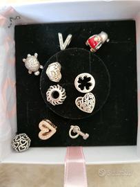 Vendo bracciale Pandora originale misura 18cm con 10 sharm e tre chiusure in ottimo stato perché è stato messo solo due volte