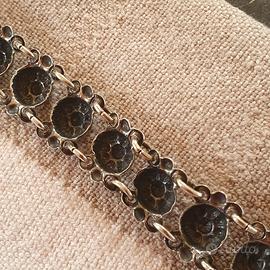 Vendo bracciale antico ( vedendo la lettera sagomata credo 1820-30 ) in argento 835. Il bracciale è in buonissimo stato a parte un fiorellino un po schiacciato e qualche bordo dei fiorellini irregolare che non so se sono fatti così o se sono rotture. ( vedi foto) È lungo 20 cm, largo 1,5 cm e pesa 11 grammi . Consegna a mano zone Trento, Valsugana e Val di Cembra, eventuale spedizione a carico dell'acquirente.