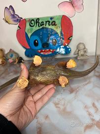 Aspetto: Il giocattolo ha una colorazione che mescola sfumature di arancione, marrone e verde, con dettagli realistici della pelle che ne riproducono la consistenza rugosa.