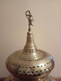 braciere in ottone finemente lavorato, smontabile in quattro pezzi come da foto, ingombro massimo cm50x75.