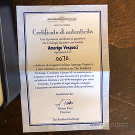Orologio BRADFORD exchange nuovissimo completo di certificato di autenticità e numero di serie, con bussola Amerigo Vespucci, pezzo introvabile e in edizione limitata.