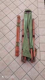 branda da campo militare anni 30/40 .seconda guerra mondiale.prodotto dalla ditta Ettore Moretti Milano . struttura in buone condizioni senza rotture. Telo integro.mis 1.95 x 70. nella sacca 1 m. x 25 cm. non spedisco .