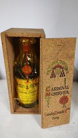 Brandy "Cardenal Mendoza Gran Reserva" vintage nella pellicola protettiva e nel cofanetto in sughero originali. Sigillo in ceralacca e cordino di garanzia intatti. Inclusi 2 bicchieri abbinati con il logo della bottiglia.
