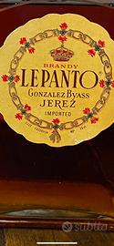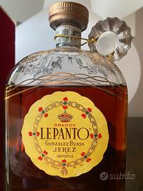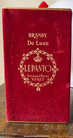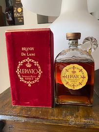 Brandy Lepanto Gonzalez Byass Jerez - Solera Gran Reserva - Vintage 1978/1982 - 75cl - Con Box Originale e Tappo in Cristallo Descrizione del Lotto Panoramica In asta un'eccezionale bottiglia da collezione di Brandy Lepanto, prodotto dalla storica casa Gonzalez Byass a Jerez, Spagna. Questa specifica edizione "De Luxe" risale a un periodo compreso tra la fine degli anni '70 e i primissimi anni '80, un'era d'oro per la produzione di brandy spagnolo, caratterizzata da un profilo aromatico ricco e complesso. Dettagli Tecnici e Conservazione • Produttore: Gonzalez Byass. • Denominazione: Brandy de Jerez. • Edizione: De Luxe - Solera Gran Reserva. • Epoca: circa 1979-1981 (identificato tramite sigillo fiscale "14 A"). • Formato: 75 cl (formato vintage pre-standardizzazione 70 cl). • Gradazione: 40% Vol. • Stato del Sigillo: Integro e originale, con fascetta fiscale d'esportazione ancora perfettamente leggibile. • Livello del Liquido: Eccellente (High Shoulder), segno di una perfetta tenuta del tappo e di una conservazione ottimale in ambiente controllato. • Condizioni Estetiche: Le serigrafie dorate sul vetro sono integre e brillanti. L'etichetta frontale è in condizioni superbe. Accessori Inclusi Il lotto è completo di tutti i suoi componenti originali, raramente reperibili insieme in queste condizioni: 1. Cofanetto Originale: Elegante box rigido rivestito in velluto rosso con loghi dorati, in ottime condizioni di conservazione. 2. Tappo in Cristallo: Il distintivo tappo "a fungo" in vetro/cristallo originale, ancora sigillato al collo della bottiglia tramite il cordino dorato originale, destinato all'uso dopo l'apertura.