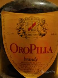 Bottiglia perfettamente conservata di Brandy Oro Pilla da cl 75 anni '60/'70