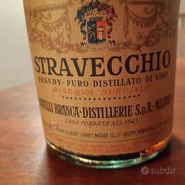 Brandy "Stravecchio Branca" puro distillato di vino, 75 cl., 42 gradi. Bottiglia da collezionismo.