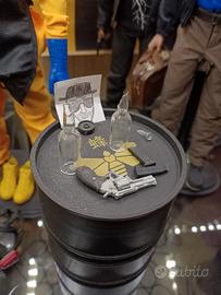 Vendo action figure custom di Walter White versione chimica (Breaking Bad), assemblata con parti selezionate e accessori dettagliati: tuta gialla, grembiule nero, guanti blu, maschera protettiva e barile incluso.